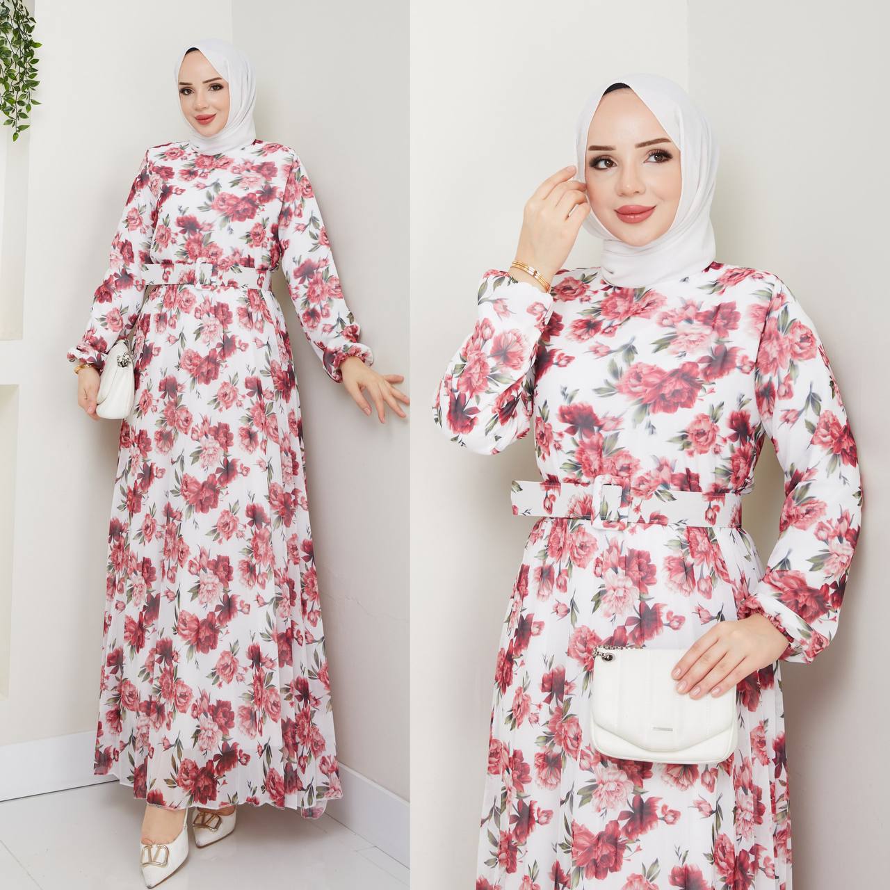 Step into a garden of style with our gorgeous floral maxi dress, expertly designed and made in Turkey. This piece perfectly captures a fresh and feminine spirit, making it a wonderful addition to your wardrobe. The dress showcases a beautiful and vivid floral print that feels both romantic and modern. A chic, contrasting belt highlights the waist, creating a defined and flattering silhouette. With its comfortable long sleeves and a gracefully flowing full-length skirt, this dress offers the perfect blend of modest coverage and contemporary fashion. Whether you are attending a daytime celebration, a brunch with friends, or a special gathering, this dress promises an effortlessly elegant look.