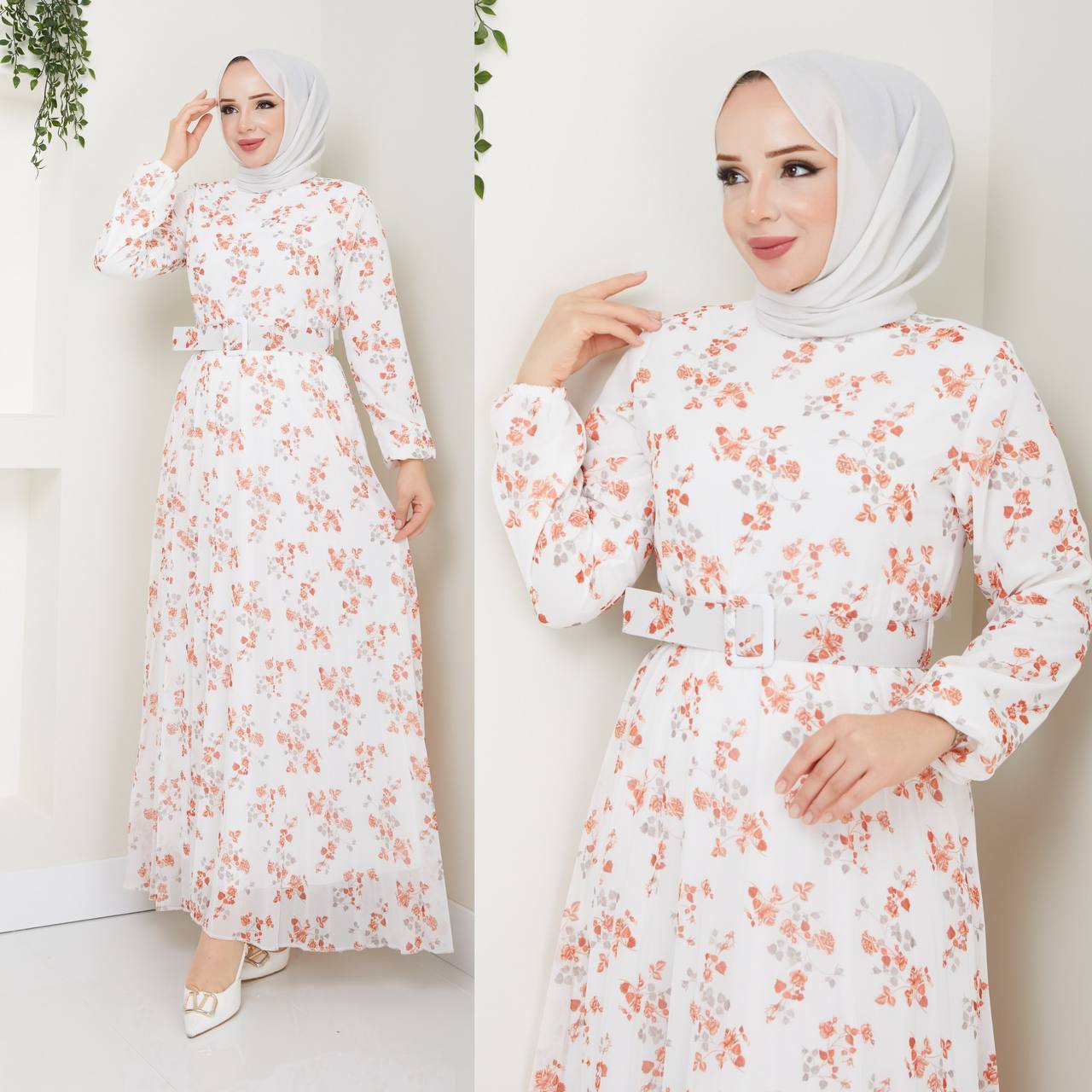 Step into a garden of style with our gorgeous floral maxi dress, expertly designed and made in Turkey. This piece perfectly captures a fresh and feminine spirit, making it a wonderful addition to your wardrobe. The dress showcases a beautiful and vivid floral print that feels both romantic and modern. A chic, contrasting belt highlights the waist, creating a defined and flattering silhouette. With its comfortable long sleeves and a gracefully flowing full-length skirt, this dress offers the perfect blend of modest coverage and contemporary fashion. Whether you are attending a daytime celebration, a brunch with friends, or a special gathering, this dress promises an effortlessly elegant look.