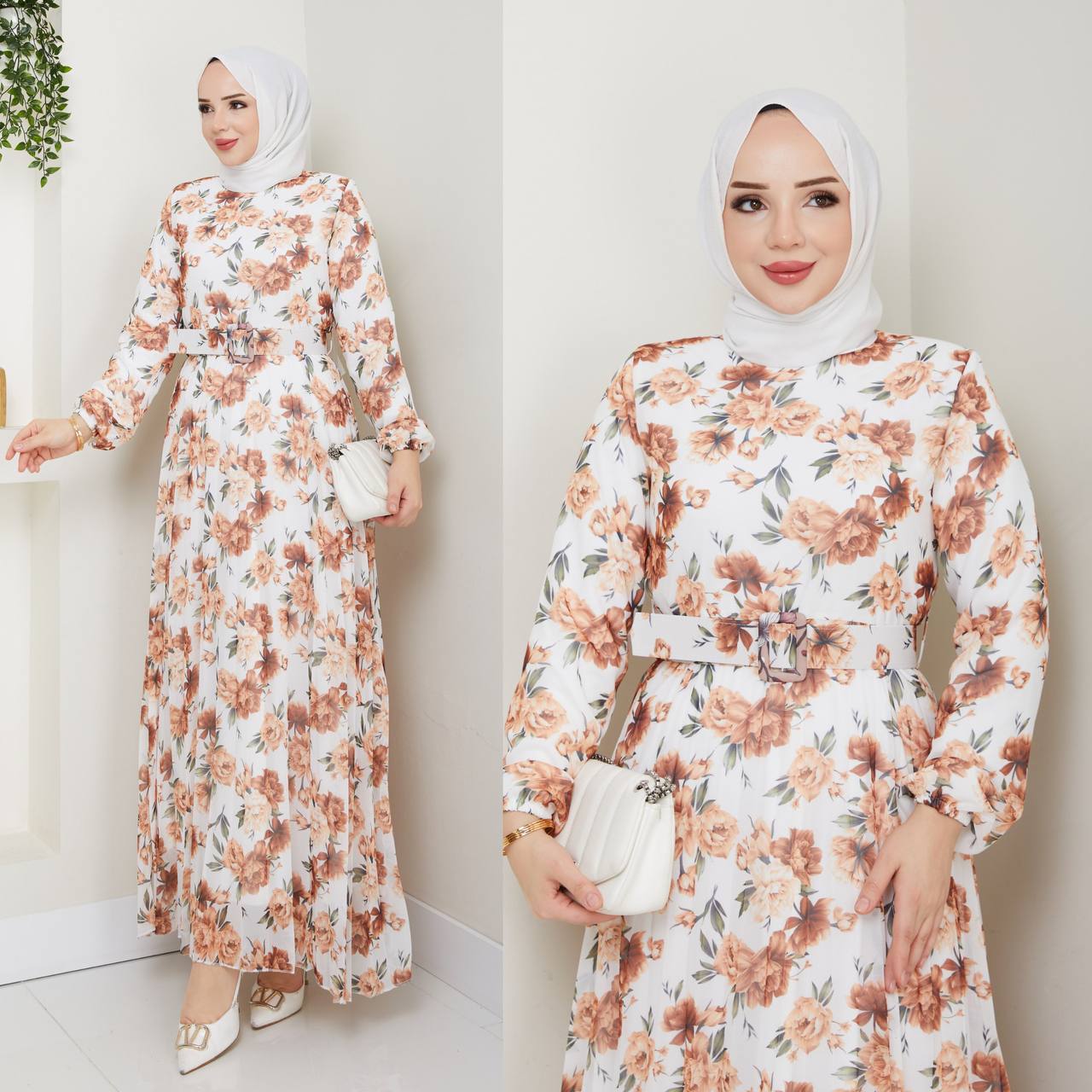 Step into a garden of style with our gorgeous floral maxi dress, expertly designed and made in Turkey. This piece perfectly captures a fresh and feminine spirit, making it a wonderful addition to your wardrobe. The dress showcases a beautiful and vivid floral print that feels both romantic and modern. A chic, contrasting belt highlights the waist, creating a defined and flattering silhouette. With its comfortable long sleeves and a gracefully flowing full-length skirt, this dress offers the perfect blend of modest coverage and contemporary fashion. Whether you are attending a daytime celebration, a brunch with friends, or a special gathering, this dress promises an effortlessly elegant look.