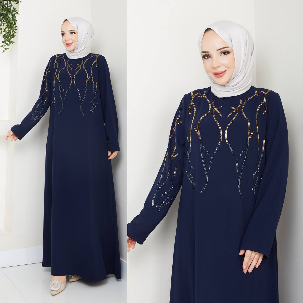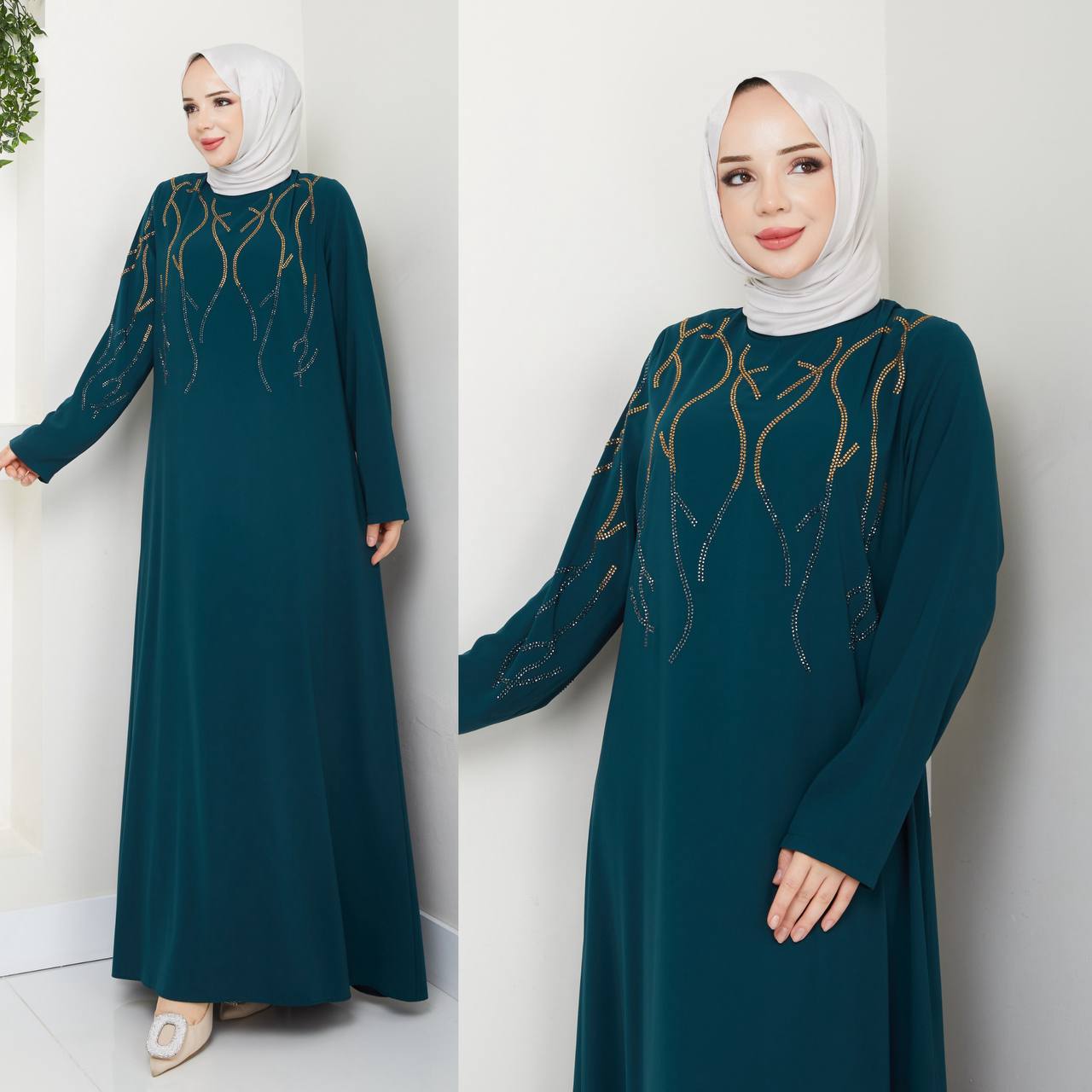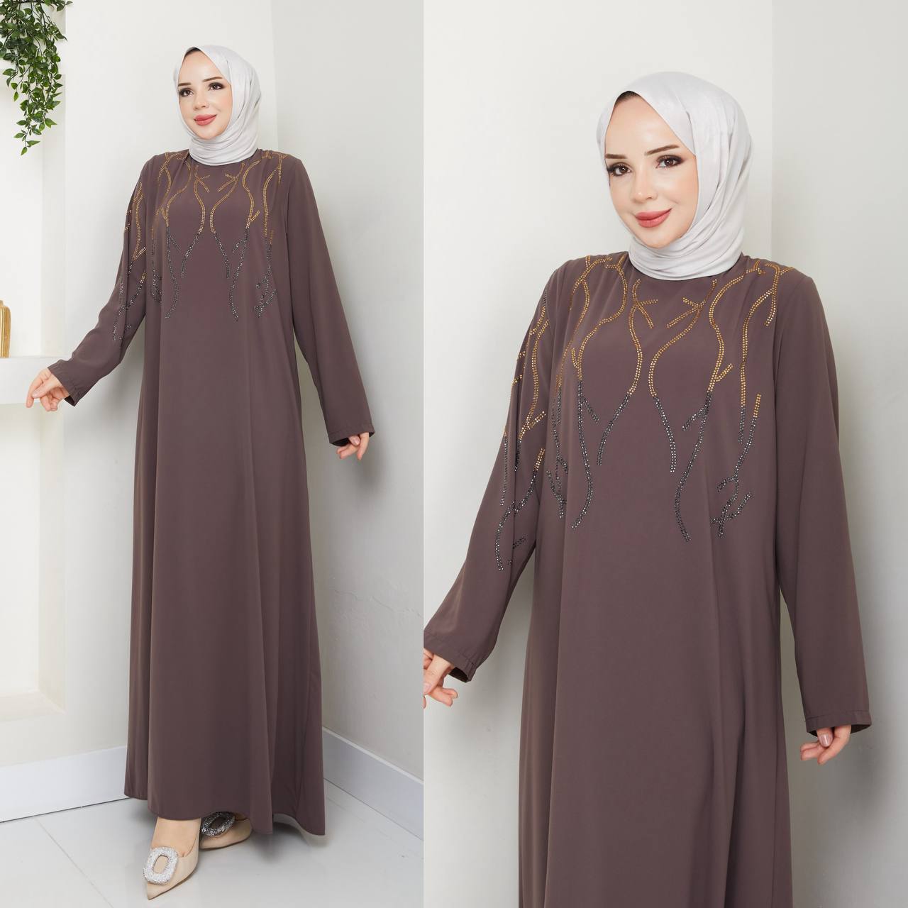 Illuminate any occasion with this breathtakingly elegant abaya, a testament to exquisite Turkish craftsmanship. This stunning piece is distinguished by a captivating, vine-like pattern of sparkling crystals that cascades gracefully across the chest and down the sleeves. The intricate, multi-toned embellishment adds a dynamic touch of glamour to the abaya's clean and classic silhouette. Designed for a comfortable and flattering fit, its simple A-line cut allows the brilliant detailing to truly shine. Perfect for evening events, weddings, or any formal gathering, this abaya is designed to make a sophisticated and memorable statement.